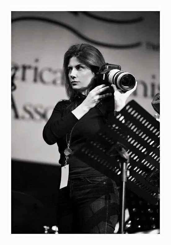 Inspired by her father's filmmaking career, Adriana transitioned from feature films to focus her lens on the soul of jazz. She served as the personal photographer for NEA Jazz Masters Jimmy Heath, Cedar Walton, and Roy Hargrove. Her foundational project, AM JAZZ: Three Generations Under My Lens, is a comprehensive archive preserved in permanent museum collections. She holds the distinction of being the first female contemporary jazz photographer to have her work acquired by a museum.
